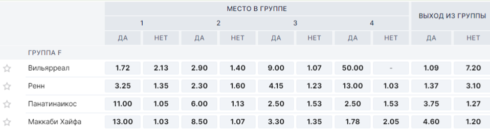 Группа F тоже не принесла больших сюрпризов. Сверхопытный еврокубковый боец Вильярреал занял первую строчку, а французский Ренн остался вторым и сыграет в стыковых матчах. В борьбе за путевку в Лигу Конференций победителем вышел Маккаби Хайфа, опередив греческий Панатинаикос лишь в последнем туре.